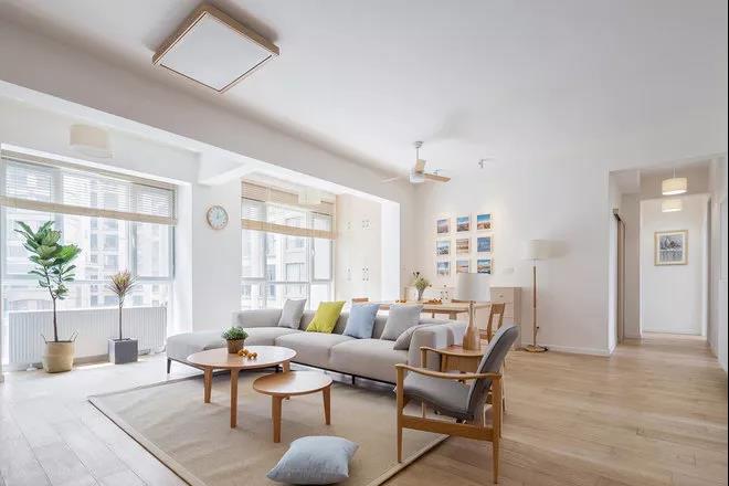 百葉窗簾的使用,大大增加了客廳的采光率。同時它比布藝的窗簾更加簡潔,午后用來隔絕火辣辣的陽光再好不過了。