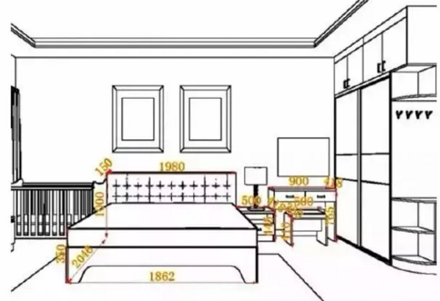▲10平方米的臥室配1.2m一下的床,10平方米至20平方米配1.5m的床,20平方米以上的臥室需要配1.8m以上的床。